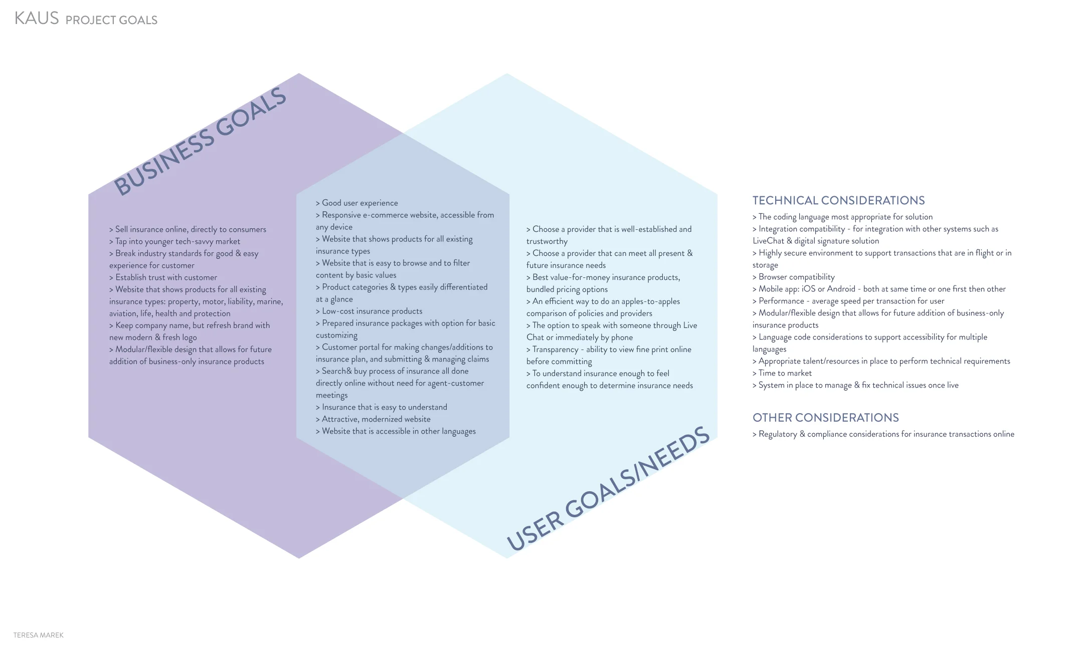 I laid out the project goals to identify the common goals shared by the business and the user, and to review technical and other considerations for the project.