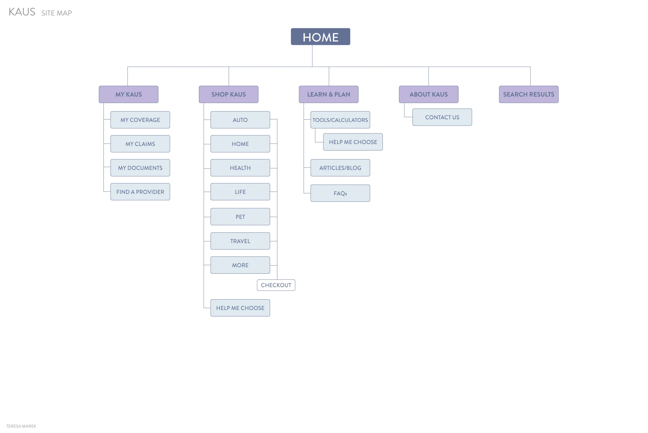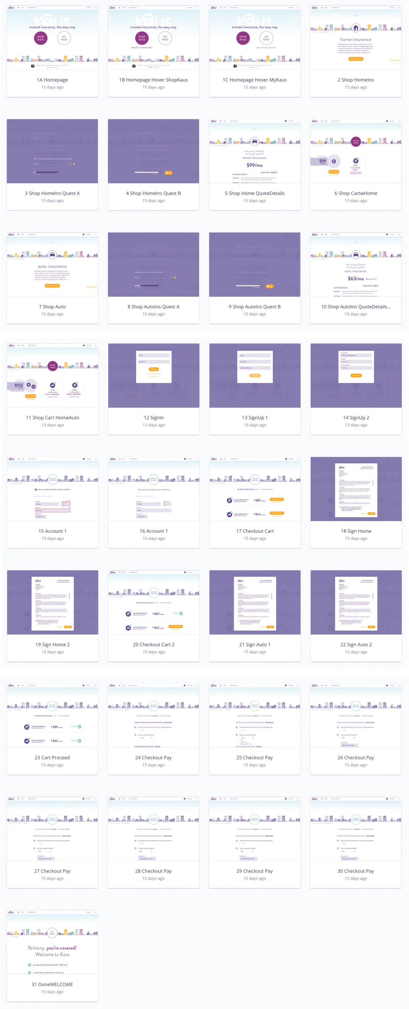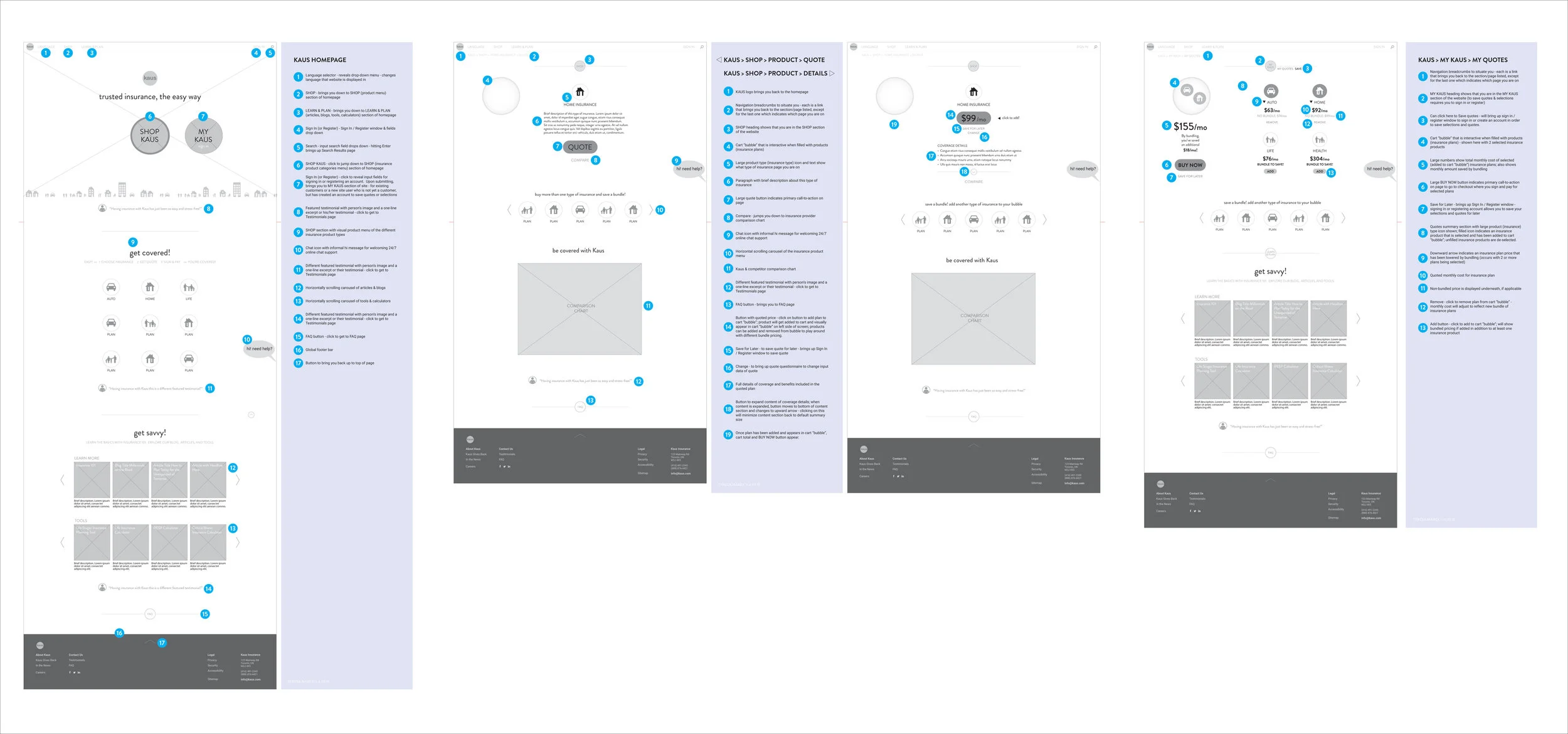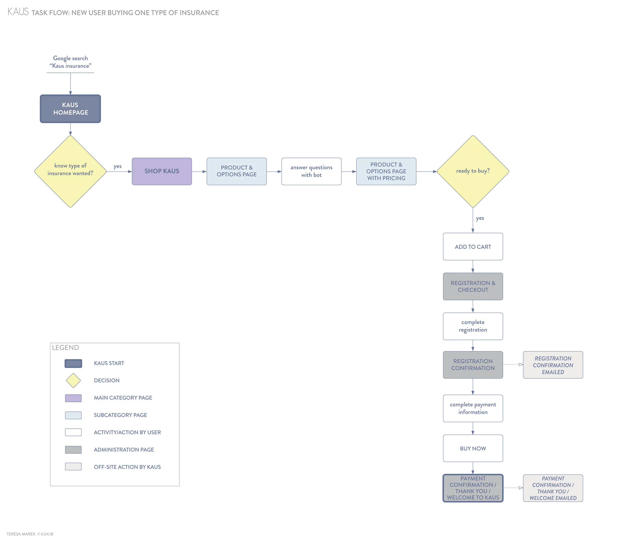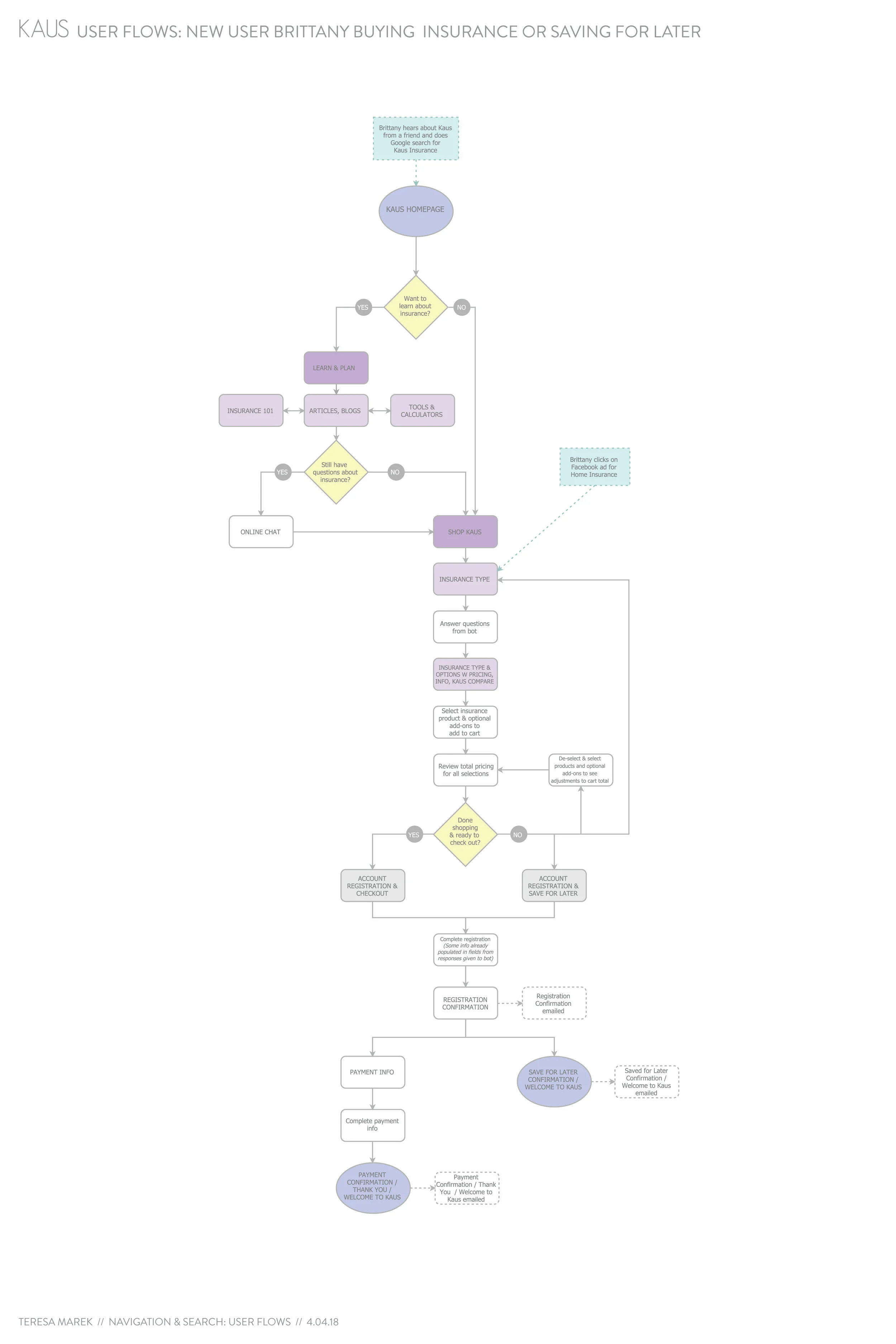 I created a task flow to map out the flow of a common task on the site (a new user buying one type of insurance).