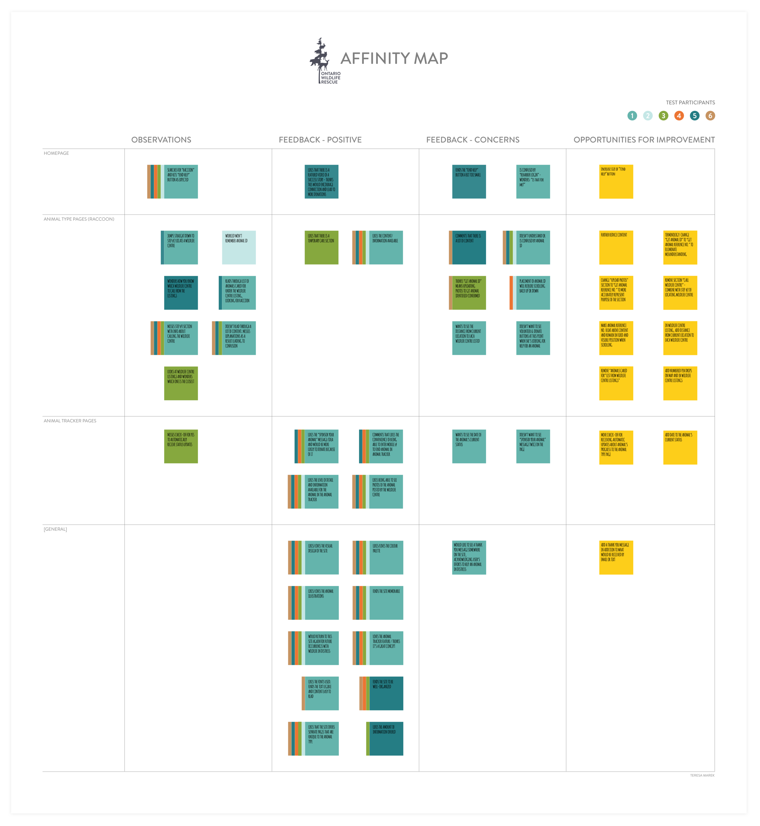 I created an affinity map to organize user testing findings in order to identify user patterns and areas of concern, and to help prioritize elements requiring iteration. Testing revealed that while users were very enthusiastic about the Animal Tracker feature, it needed to be better presented and explained.